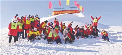 图为学生们在享受冰雪运动的快乐。