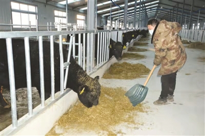 通榆县创新“五位一体”肉牛养殖模式,走集中化、规模化、标准化肉牛养殖之路,激活了产业快速发展,有力促进了肉牛养殖业,打造了乡村经济振兴新引擎。目前,全县肉牛已发展到20万头,总量名列全省第3;存栏17.6万头,同比增长25%;出栏2.4万头,同比增长5.3%。图为向海蒙古族乡复兴村肉牛养殖场工人正在养殖场劳动。 陈宝林 王旭明摄