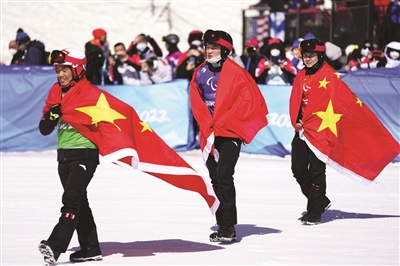 当日,北京2022年冬残奥会单板滑雪男子障碍追逐UL级决赛在张家口云顶滑雪公园举行,中国选手纪立家、王鹏耀、朱永钢、张义琦分别获得冠军、亚军、季军和第四名。 新华社记者许畅摄