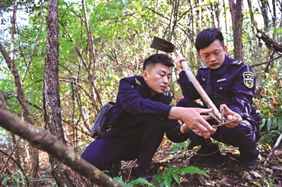 3月15日,武夷山国家公园执法人员在辖区内发现违法放置的捕兽夹。