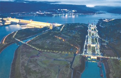 3月22日晚拍摄的三峡大坝和三峡五级船闸夜景(无人机照片)。
