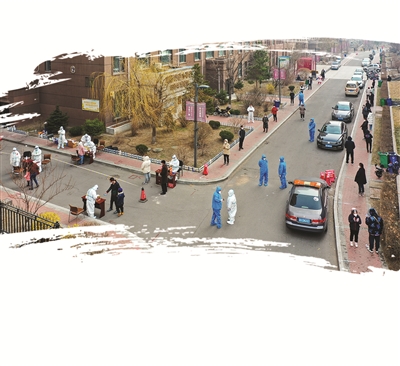4月10日5时,镇赉、洮南、通榆驰援白城新一轮核酸检测的3支车队驶入主城区,迎着晨曦,200多名医务工作者迅速进入工作岗位。他们熟练规范的操作、对居民温馨的提示指导,让检测有序高效进行。