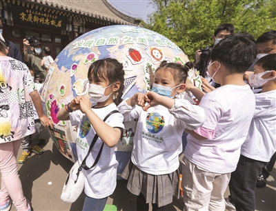 当日,“放飞绿色梦想 保护地球未来”世界地球日公益活动在北京举行。参加活动的小朋友展示自己的绘画作品,并通过唱歌、朗诵等系列活动,旨在带动更多孩子参与到保护地球环境、践行低碳环保生活的实践中来。 新华社记者才扬摄