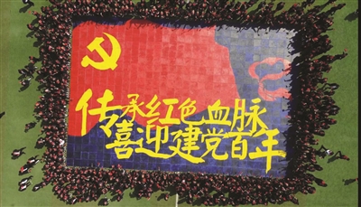 2021年5月31日,由共青团白城市委、白城市教育局、白城市少工委主办的“传承红色血脉·喜迎建党百年”少先队主题实践活动成功举办。图为600名少先队员绘制的“传承红色血脉·喜迎建党百年”绘画拼图。
