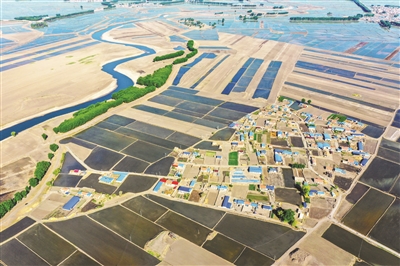 5月23日,鸟瞰洮儿河两岸,稻田、村庄如同一幅美丽画卷。据了解,今年洮南市水稻种植面积56.24万亩,随着近期气温稳定回升,水稻插秧工作已全面展开,部分乡镇已经完成插秧作业,进入稻苗生长期,预计5月末该市水稻插秧工作全部完成。 本报记者李晓明摄