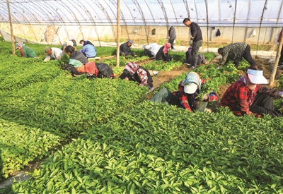 东北“辣椒之乡”集散地洮南市培育的辣椒苗近日已从大棚移出,分往各地栽植。图为五月二十二日,洮府街道福胜村农民正在大棚分装辣椒苗,运往外地种植。 邱会宁 范海辉摄