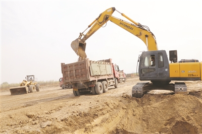 白城经开区胜利路西起图乌公路东至向阳环岛,是白城市城市发展(亚行)项目9条新建道路中的一条,全长1770米,红线宽度45米,面积79650平方米,工程造价3150万元。4月28日复工至目前,现已完成清表面积59200平方米,占总面积69%;挖雨水沟槽175延长米。下步将进行道路基础平整、路基填筑及铺设污雨水管线工程,计划9月末完成全部地下管网工程。图为胜利路施工现场。 陶丽萍 本报记者张殿文摄
