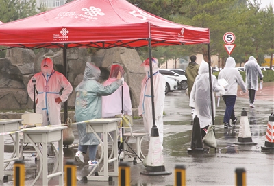 现场,考生或是在家长的陪同下前来考试,或是轻装上阵,自己乘车或骑车参加高考。和往年不同的是,待考生进入考场后,陪考家长便开始逐渐减少,相继离开。今年陪考队伍的规模虽然没有以往庞大,考前加油呐喊也不似往年热闹,但家长身穿旗袍送考“旗开得胜”,与孩子轻轻拥抱、拍照留念等“传统送考项目”依然保留,来自父母、老师、同学和社会各界的关爱并没有减少。