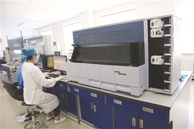 图为工作人员正在对采集的血液进行检验。 本报记者王野村摄