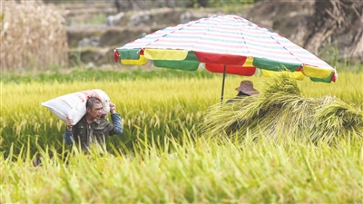 连日来,广西大化瑶族自治县各乡镇农民抓住晴好天气抢收早稻,播种晚稻,全面开启“双抢”模式。 新华社记者张爱林摄