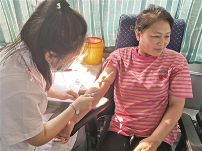 “我听了无偿献血知识宣传后,知道献血不仅能救人生命,还对我们的身体有好处。于是,村里通知说今早有流动采血车到集上时,我就和爱人一起来献血了。”正在采集血样的林海镇大兴村村民何艳玲说。采血过程中,明显能看出,何艳玲是有些紧张的,但她依然勇敢地伸出了手臂……