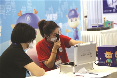 日前,吉林省第一届职业技能大赛在长春落下帷幕,我市组织人员参加了10个项目的比赛,并获得眼镜验光员、眼镜定配工及医疗临床辅助服务3个项目的优胜奖。图为我市选手王赫在参加眼镜验光员项目比赛。本报记者 张殿文摄