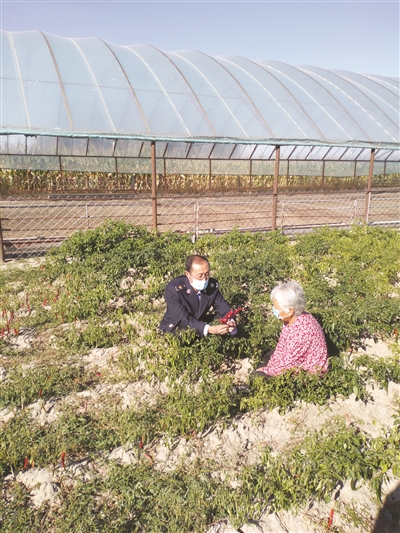 大安市税务局驻舍力镇东升村工作队持续巩固拓展脱贫攻坚成果,大力推进乡村振兴,多措并举拓宽群众增收渠道,不断增加农民收入。图为驻村第一书记到太平庄屯帮助村民徐淑琴家采摘辣椒,共话丰收喜悦。 李国义摄