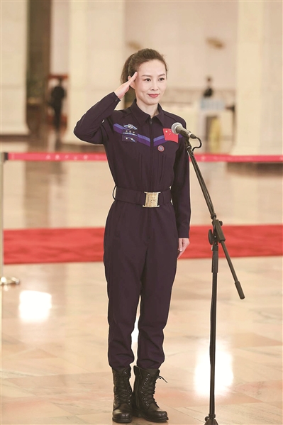 10月16日,中国共产党第二十次全国代表大会在北京人民大会堂开幕。这是开幕会前,王亚平代表接受采访。 新华社记者殷刚摄