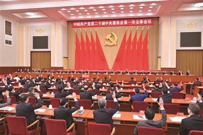 新华社北京10月23日电 刚刚在中国共产党第二十届中央委员会第一次全体会议上当选的中共中央总书记习近平和中共中央政治局常委李强、赵乐际、王沪宁、蔡奇、丁薛祥、李希,23日中午在人民大会堂同采访中共二十大的中外记者亲切见面。