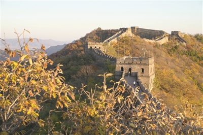 游客在北京慕田峪长城景区参观游览(10月22日摄)。金秋时节,北京慕田峪长城景区内层林尽染,迷人景色吸引了不少游客。 新华社记者鞠焕宗摄