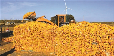 为减少粮食遭损,确保颗粒归仓,通榆县向海蒙古族乡采取上栈子、码趟子、装楼子、设围网等方式引导农民科学储粮,进一步提高农民收入。目前,该乡己超额完成贮粮任务。图为农民将粮食装入围网。 王旭明 陈宝林摄