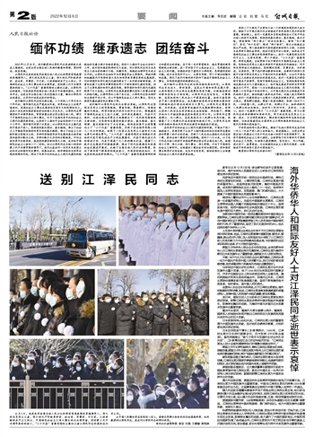 对江泽民同志逝世表示哀悼