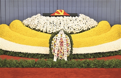 12月6日上午,中共中央、全国人大常委会、国务院、全国政协、中央军委在北京人民大会堂隆重举行江泽民同志追悼大会。 江泽民同志的骨灰盒安放在遗像前的鲜花翠柏丛中,骨灰盒上覆盖着鲜红的中国共产党党旗。江泽民同志的夫人王冶坪率全家敬献的花篮摆放在江泽民同志的骨灰盒前。 新华社记者殷博古摄 |