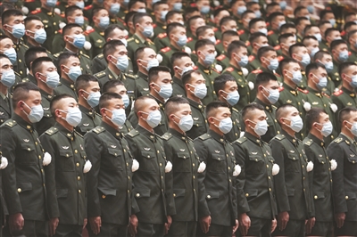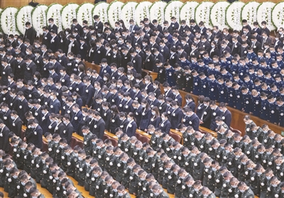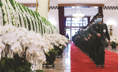 这是出席追悼大会的解放军代表步入人民大会堂大礼堂。新华社记者翟健岚摄 |