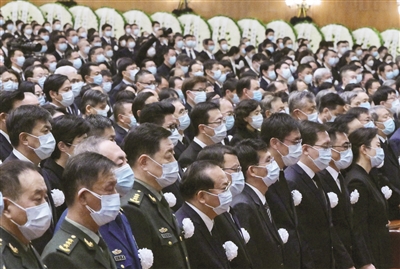 | 十二月六日上午,中共中央、全国人大常委会、国务院、全国政协、中央军委在北京人民大会堂隆重举行江泽民同志追悼大会。 新华社记者高洁摄 |