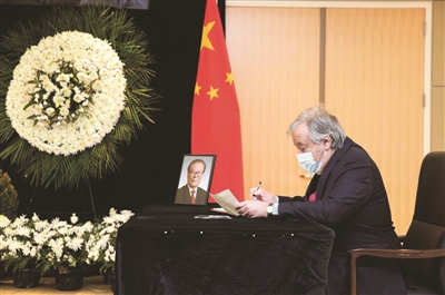 | 十二月五日,联合国秘书长古特雷斯在中国常驻联合国代表团驻地吊唁江泽民同志。 新华社记者王迎摄 |