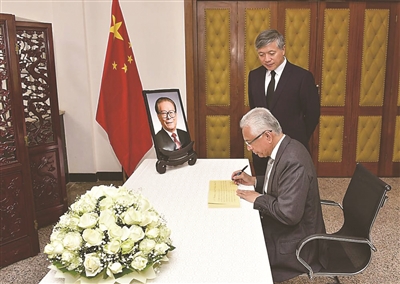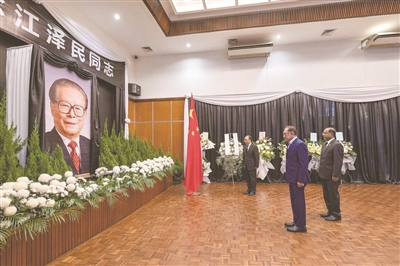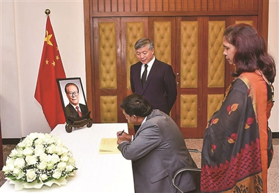 | 12月2日,毛里求斯总理贾格纳特在中国驻毛里求斯大使馆吊唁江泽民同志。 新华社发(中国驻毛里求斯大使馆供图) |