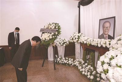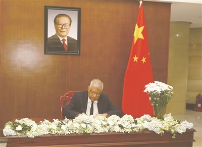 | 12月2日,斯里兰卡总理古纳瓦德纳在中国驻斯里兰卡大使馆吊唁江泽民同志。 新华社记者车宏亮摄 |