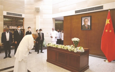 | 十二月二日,斯里兰卡总统维克拉马辛哈在中国驻斯里兰卡大使馆吊唁江泽民同志。 新华社发(萨米拉摄) |