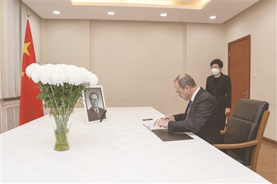 | 12月5日,乌兹别克斯坦总理阿里波夫在中国驻乌兹别克斯坦大使馆吊唁江泽民同志。 新华社发(高山摄) |