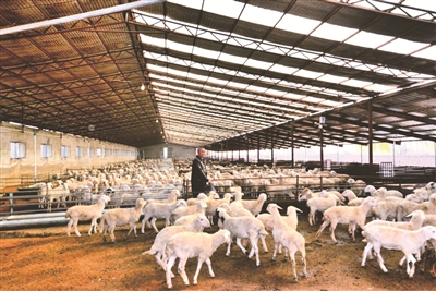 通榆县立足本地资源优势引导农民发展养殖业,大力实施规模化舍饲管理,带动农民增收致富。图为向海蒙古族乡龙井村的养殖户正在喂羊。 陈宝林摄