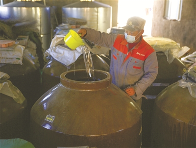 洮南市胡力吐蒙古族乡长青村立业酒厂将酿酒期选在秋后农闲时间,为附近农民提供了就业机会,实现了企业和农民经济效益双丰收。图为工人正在酿酒。 邱会宁 范海辉摄