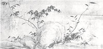 苏东坡崇尚体现人品节操的君子画,同他本人的人品、才识和性情分不开。《潇湘竹石图》是东坡十分著名的水墨作品,画与君子关联,竹中空外直,有节耐寒,最适合比喻君子的正直、谦虚和气节。两幅墨竹上那乌黑的宝墨之光,体现出高洁的寓意。