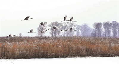 镇赉县严格落实河湖长制,不断加大水资源保护力度,坚持常态化巡河、护河,确保河湖岸线无污染,让河湖成为孕育生机的“补水线”,绿色生态的“环保线”,高质量发展的“生命线”。图为在莫莫格国家级自然保护区里,野化训练的丹顶鹤展翅飞翔。 潘晟昱摄
