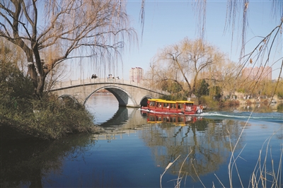 二月十四日,山东省济南市天下第一泉风景区,游客在大明湖游览。