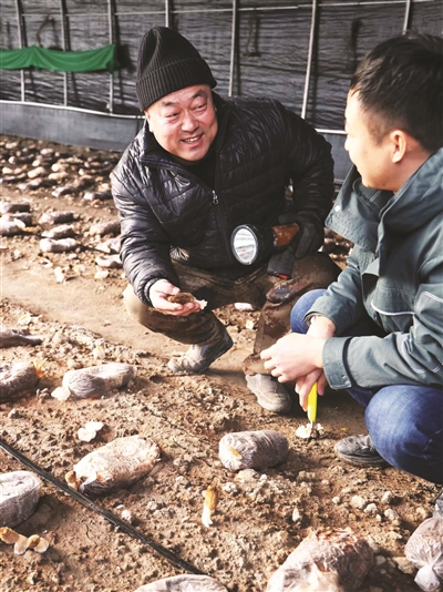 通榆县去年引进羊肚菌种,并在边昭镇、乌兰花镇两地试种,今年春节期间,24.4亩羊肚菌试种成功并陆续上市,深受消费者欢迎,为在全县推广打下良好基础。图为边昭镇五井子村种植工人正在采收已经成熟的羊肚菌。 王志鹏 本报记者 李晓明摄