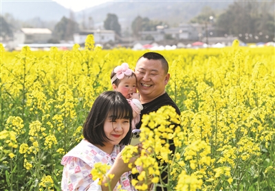近日,位于四川成都崇州市的数万亩油菜花竞相绽放,吸引游客前来踏春观光。