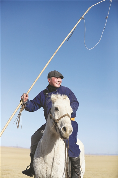 这是3月29日锡林郭勒盟西乌珠穆沁旗草原上拍摄的牧民。