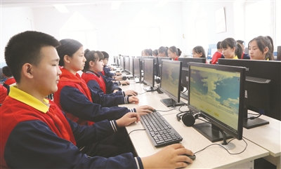 清明节来临之际,为弘扬中华优秀传统文化,加强爱国主义教育,洮北区长庆小学利用微机课,引导学生通过网络用鲜花祭祀、书信祭祀等方式缅怀英烈。图为学生在微机课上进行网上祭奠英烈。 周丽丽 本报记者张殿文摄