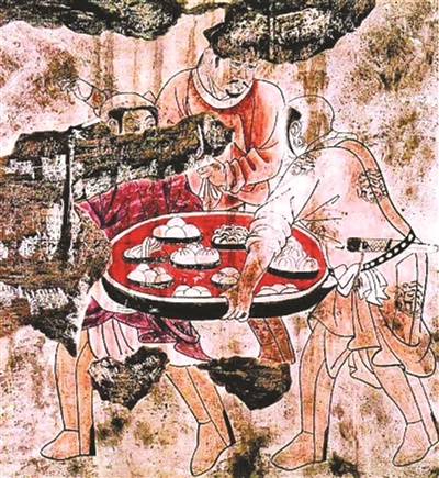 宋人吃面有来头。宋朝的面食品类很多。《东京梦华录》“饼店”条记载:“凡饼店,有油饼店,有胡饼店。若油饼店,即卖蒸饼、糖饼、装合、引盘之类。胡饼店即卖门油、菊花、宽焦、侧厚、油碢、髓饼、新样满麻。每案用三五人捍剂卓花入炉。自五更,卓案之声远近相闻。唯武成王庙前海州张家、皇建院前郑家最盛,每家有五十余炉。”难怪《水浒传》里动辄说,“回些面来打饼”。“蒸饼”即炊饼,“装合”即盒装的饼,“引盘”是盛于盘子里的食品。“捍剂”是将面团切成大小差不多的剂子,“卓花”是将面块捏出花边。“捍剂卓花”的意思也就是把面团先分成大小相近的小剂子,再分别擀开成饼,最后捏出花纹。