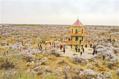 杏树林中,杏花竞相开放,人们徜徉于花海,纷纷拍照留念。活动现场,精彩的文艺演出获得观众阵阵掌声;自行车邀请赛吸引了大批选手踊跃参加。在商业展区,游客驻足参观,对特色农副产品和旅游资源有了更加深入的了解。