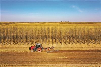 人勤春来早,田间备耕忙。日前,在我市各个乡镇广袤的大地上,随处可以听到农机的轰鸣,看到忙碌的农民,他们平整土地、打垄拉肥,一派繁忙的景象。图为通榆县新兴乡农民利用农机打垄。 本报记者李晓明摄