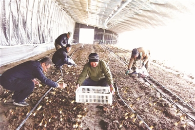 近年来,通榆县把“南菇北种”作为促进农民增收致富的区域特色产业,将盛产在云贵川等地珍稀食用菌品种羊肚菌在边昭镇、乌兰花镇两地试种成功,不仅为全县推广打下良好基础,还成为乡村振兴的新引擎。图为日光大棚内工人们正小心翼翼地采收已经成熟的羊肚菌。 王志鹏摄