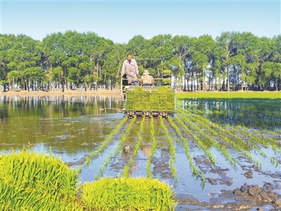 时值五月下旬,我市春耕生产进入高潮,田间地头随处可见农民春耕生产的忙碌身影。图为五月二十一日,白城经开区农民正在进行水稻插秧。 本报记者李晓明摄