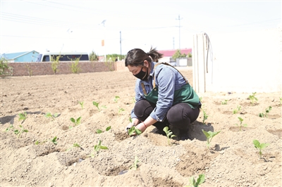 图为村民王立华利用自家庭院以种植万寿菊为主,兼种黄瓜、茄子等应季蔬菜,每年仅此项收入就有8000余元。 本报记者张殿文摄