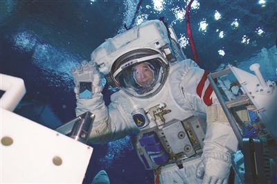 大多数航天员面对水下训练都需要克服各种各样的挑战,有狭小密闭空间带来的束缚感,有水下波纹导致的眩晕感,以及体力不支等等。朱杨柱遇到的挑战则是上脚限位器。将厚重的鞋子近乎盲操作地卡进脚限位器2厘米左右的卡槽缝里,原本就是个高难度的技术活。他的脚型比较小,穿着舱外服配套的鞋子后,脚在鞋里晃荡,上脚限位器更加困难。经过反复试验,他穿上两双厚袜子、两双薄袜子后,鞋子终于合脚了。