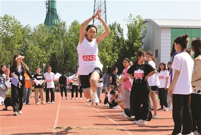 近日,白城职业技术学院举办了第十一届田径运动会。本次运动会共38项比赛项目、14种游戏项目,参赛运动员859人。比赛中,运动员们驰骋赛场、超越自我、努力拼搏、积极进取,展示了师生文明、团结的精神风貌,营造了充满活力和健康向上的校园文化。图为比赛场景。 本报记者郭梓钦摄