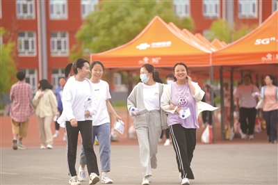 六月八日下午,随着考试结束指令发出,我市考生顺利完成高考笔试科目考试。考生们告别中学时代,即将奔赴新的征程。图为考生走出考场。 本报记者刘冠男 姜宁摄