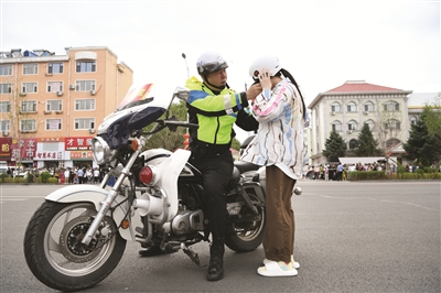“走错考点怎么办?”“快上车!”8点10分,在白城毓才实验高中考点,一辆摩托载着考生稳稳地停在考点门口。考生从车上跳下,摘下头盔,向辅警黄伟鞠躬表示感谢。原来,市公安局交巡警支队四大队辅警黄伟在白城市第十中学考点护考时,发现从考点内走出一位女同学,出门之后就向路北匆匆跑去。黄伟立即跟上前询问,经了解得知,女孩是一个人来参加考试的,进入考点后被告知走错了考点,她本应该在白城毓才实验高中考点参加考试,女孩被突然的变故吓得不知所措,出门就向北边跑。黄伟立即安慰她说:“你别着急啊,我送你去,一定不能耽误你考试!”随后,他帮助考生带好安全头盔,让女孩坐上摩托车,不到3分钟便将考生护送进入考场。走进考场的大门,女孩挥手致谢,脸上也露出了笑容。