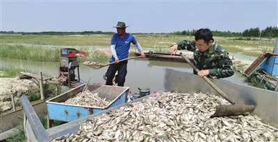 近年来,镇赉县在强化环境保护的同时,合理开发当地资源,充分利用河湖泡沼多的优势,大力发展养殖业,取得了环境保护与经济效益双丰收。图为镇赉县胜利乡养殖户王凯在为养殖的河蟹制作饲料。 沙占春摄